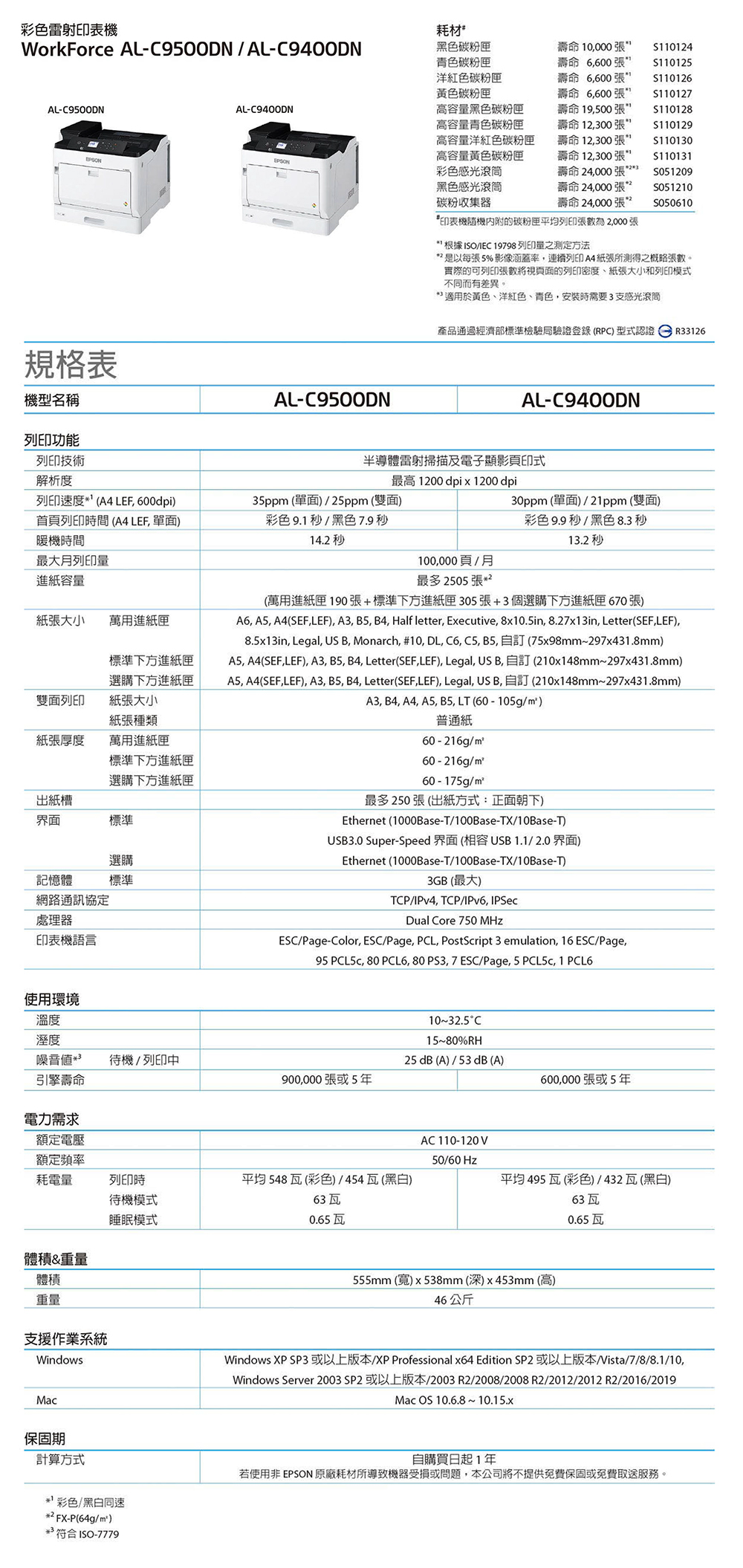 EPSON Aculaser C9500DN 彩色雷射印表機