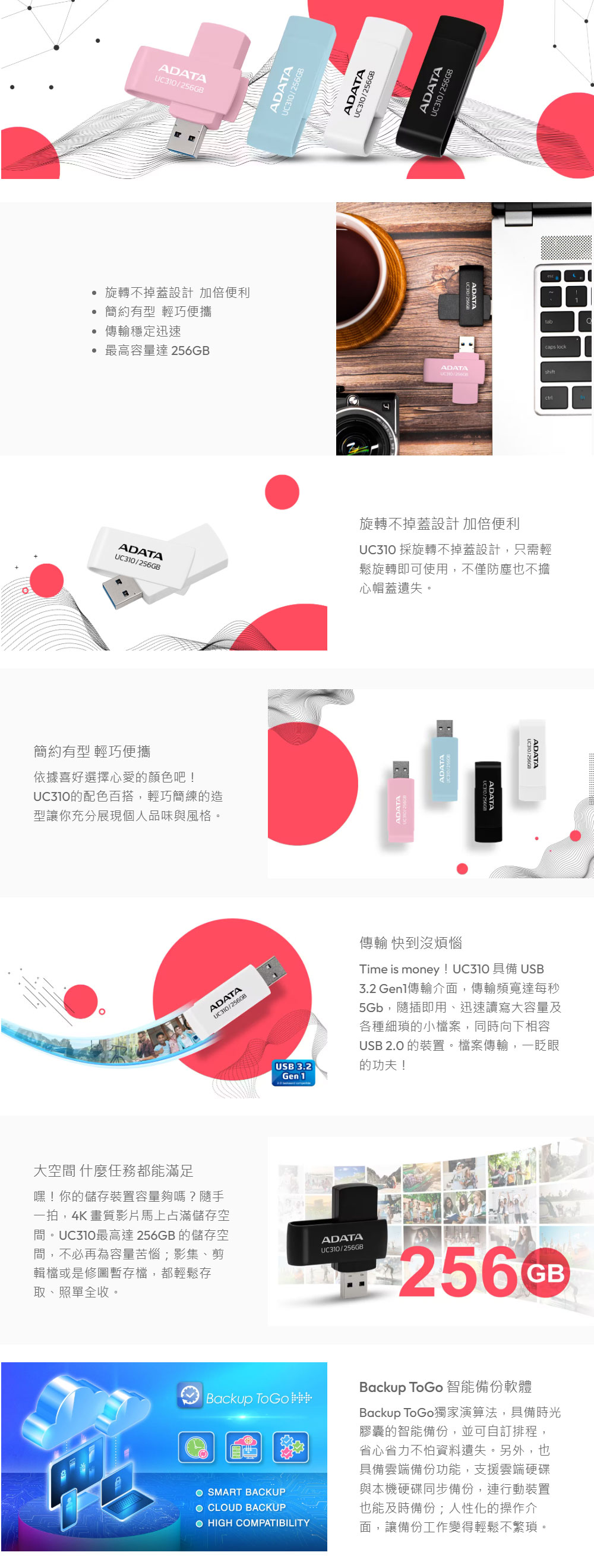 威剛 UC310 128GB USB3.2旋轉隨身碟(粉)