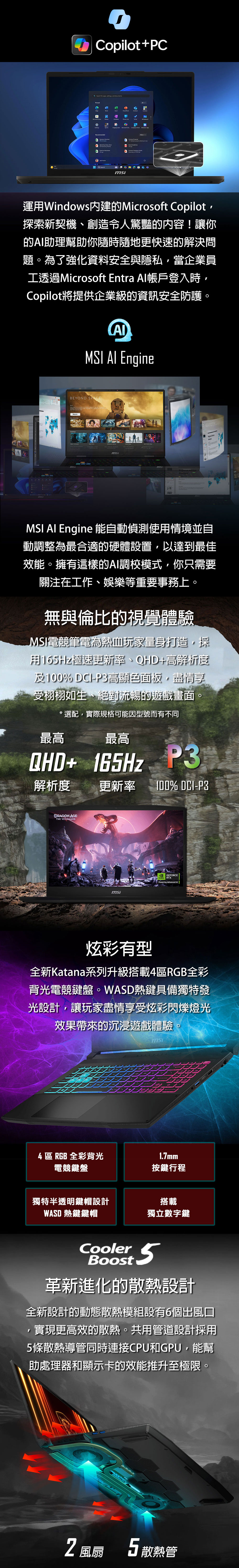 微星 MSI Katana 15 HX B14WEK-803TW-BB71470X16GXXDX11MA 15.6吋筆電