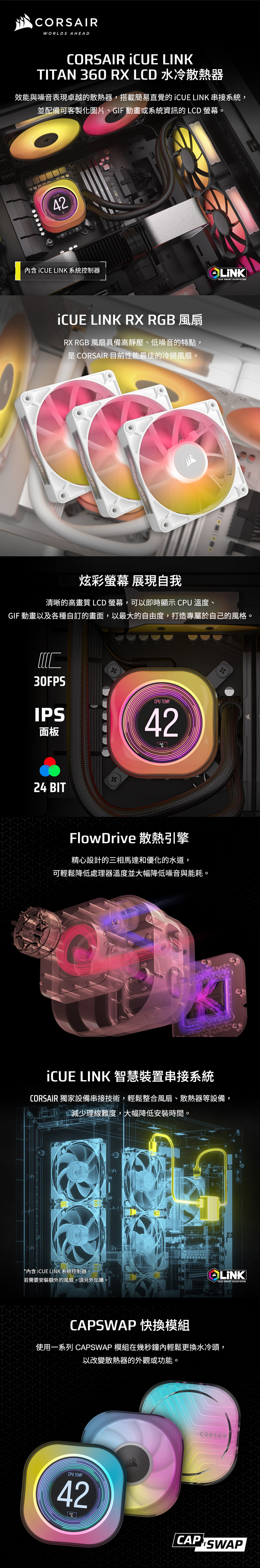 海盜船CORSAIR iCUE LINK TITAN LCD 360 RGB CPU水冷散熱器【白】