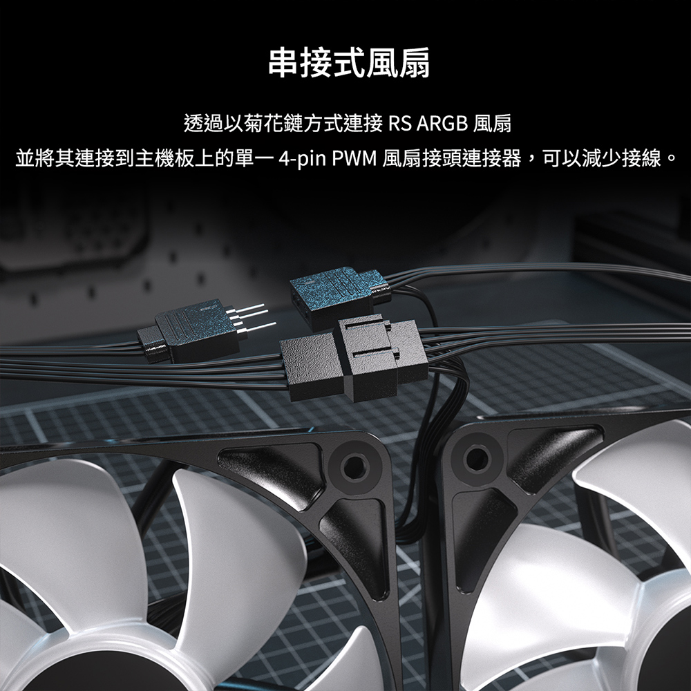 ․ RS120 ARGB 風扇提供高氣流、靜態壓力和低噪音