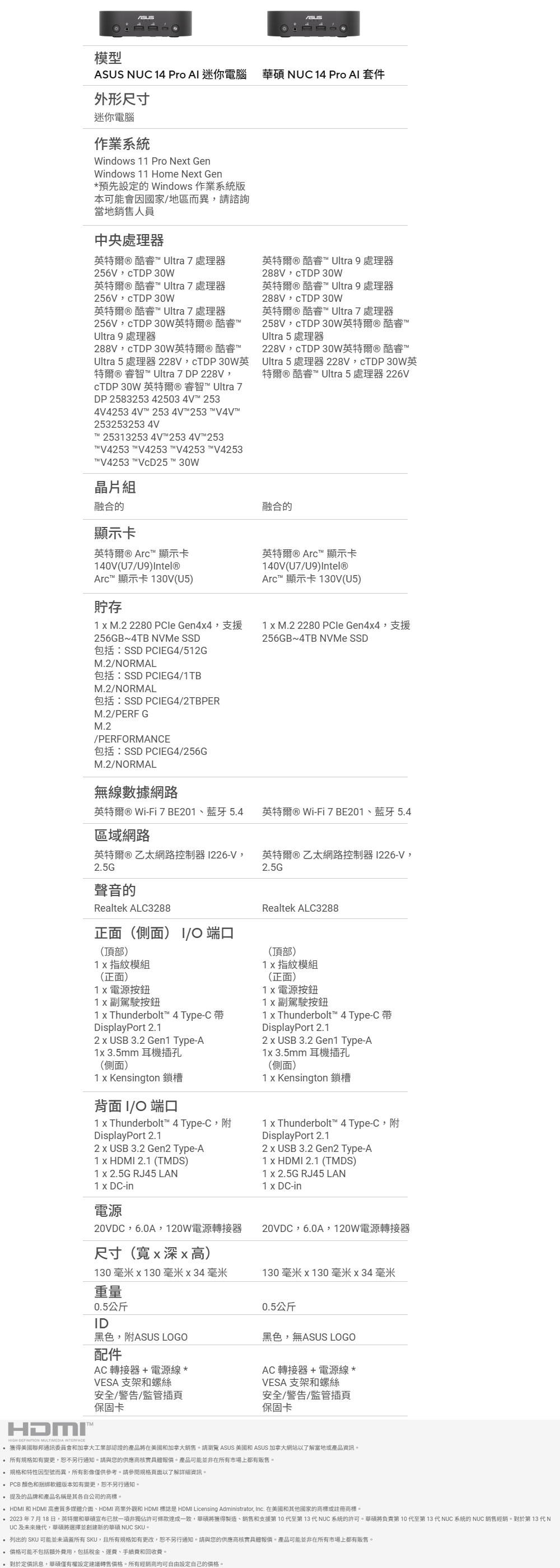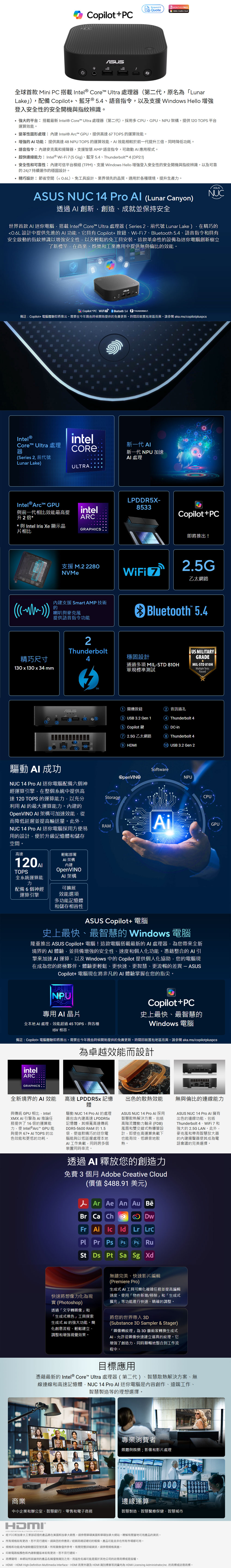 華碩 ASUS NUC 14 PRO AI U7(RNUC14LNKU7073N9)(L10) 電腦