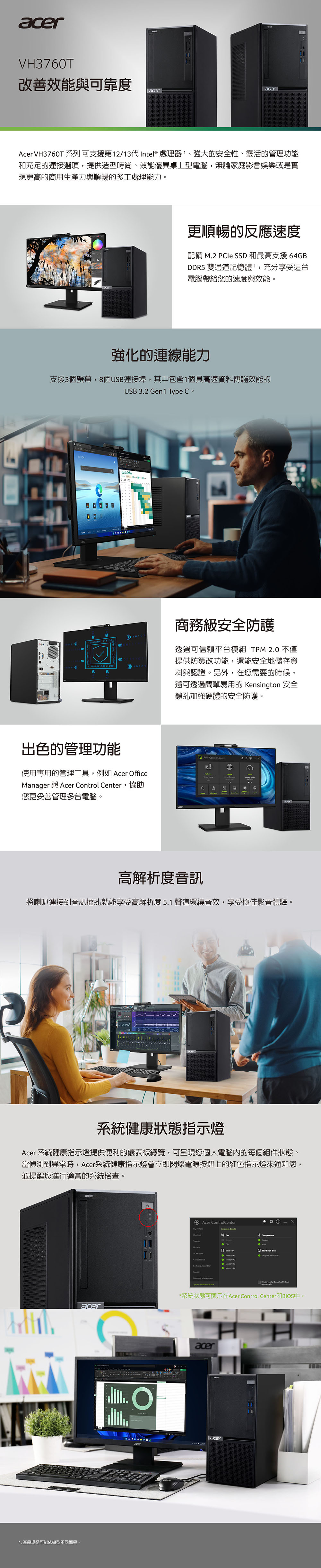 ACER-H VH3760T_W-00E/Ci5-13400 U16GBV 1TB SSD M.2灌W11H USB K+M 300W WNHPML 個人電腦