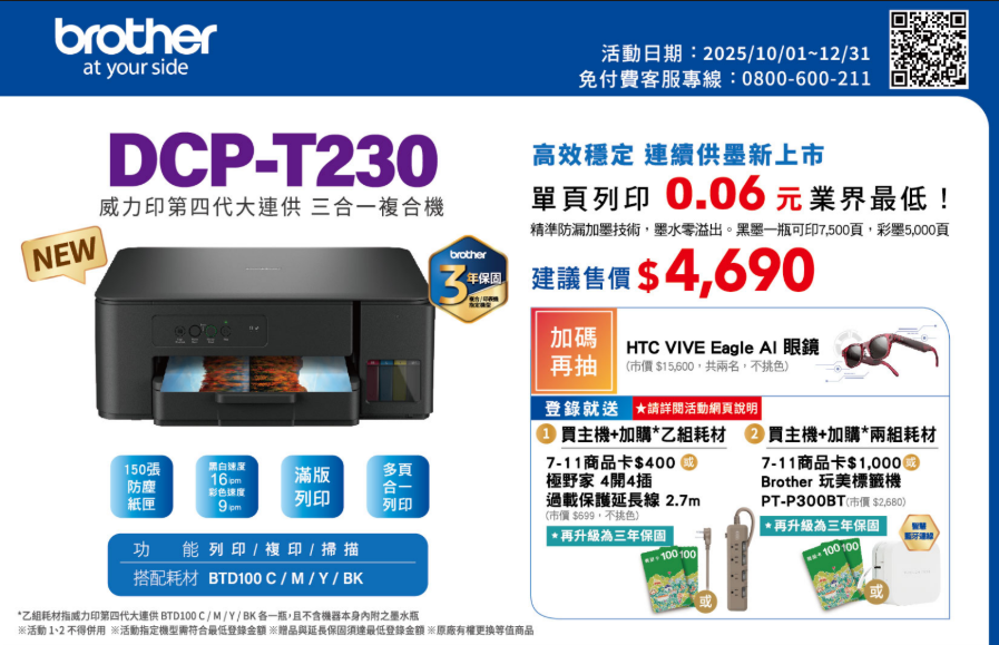 BROTHER 第四代威力印DCP-T230 噴墨印表機