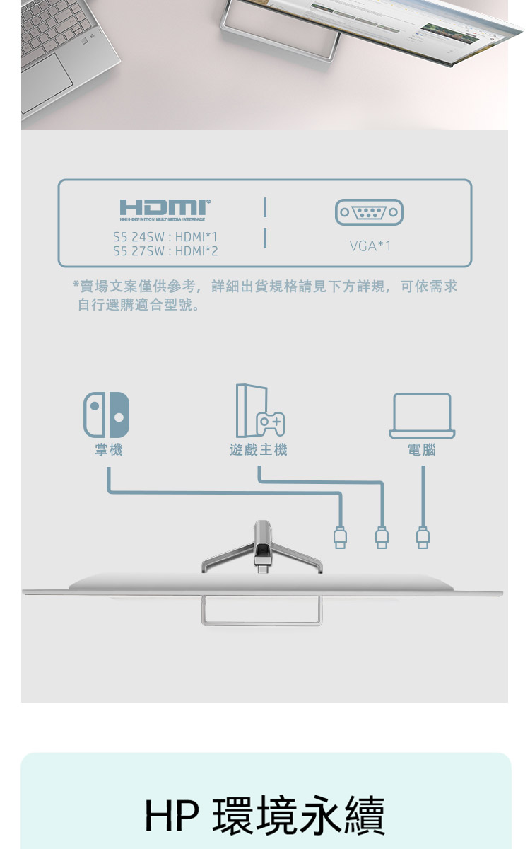 HP S5 524SW FHD WHT MNTR 電腦螢幕 ( 94C22AA )
