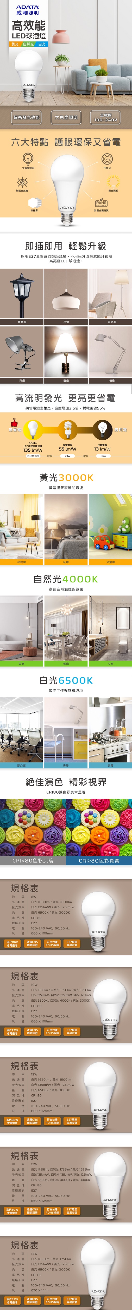 威剛照明 13W 高效能LED(135lmW)球泡燈-黃光