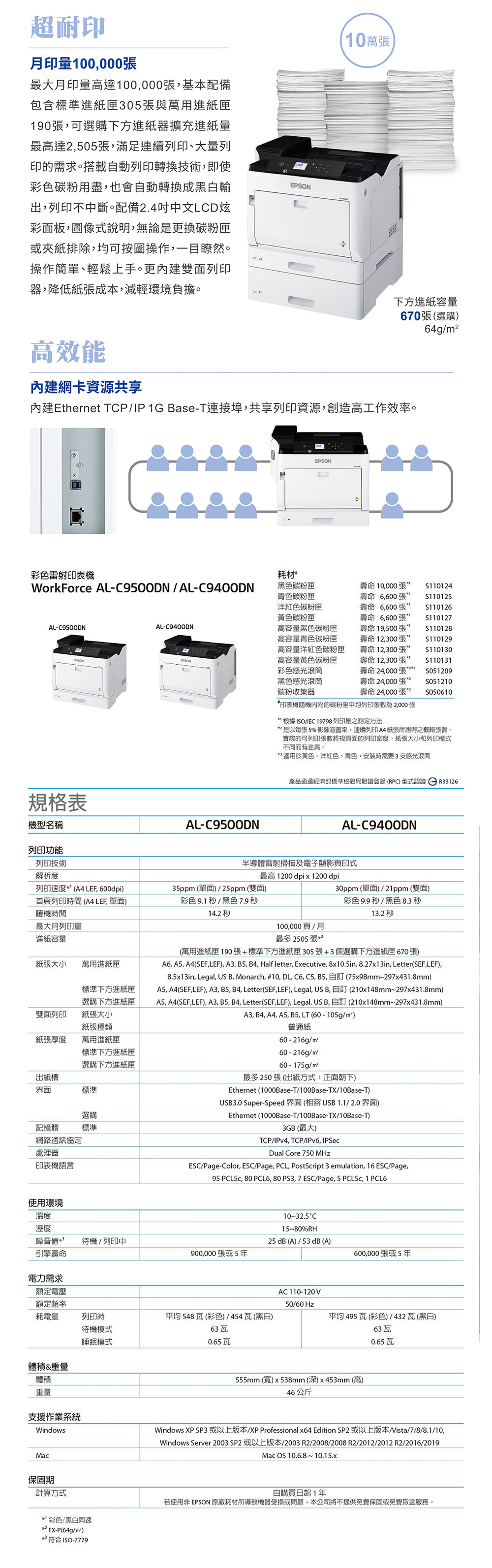 EPSON Aculaser C9400DN 彩色雷射印表機
