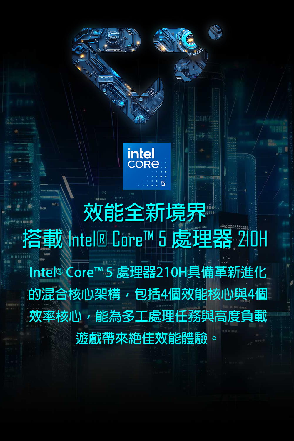 | 中央處理器型號 | Intel® Core™ 5-210H (2.2GHz/Turbo 4.8GHz)(Cache 12MB) | ||