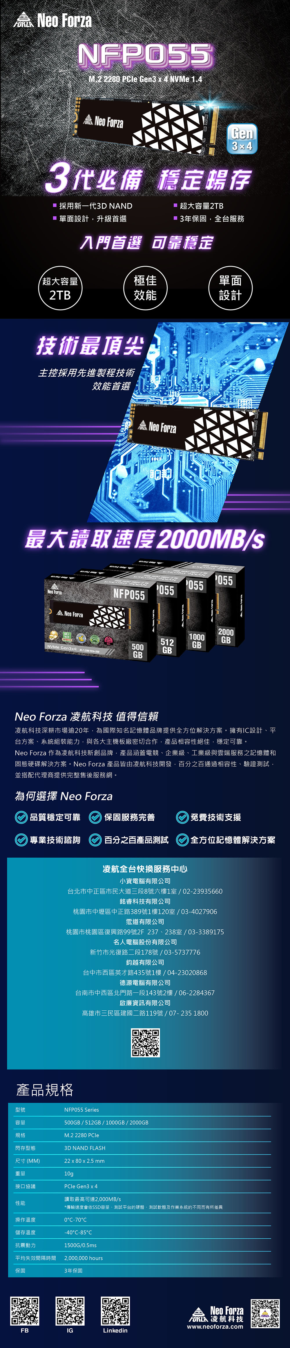 Neo Forza 凌航 NFP055 1TB PCIe Gen3x4 固態硬碟SSD